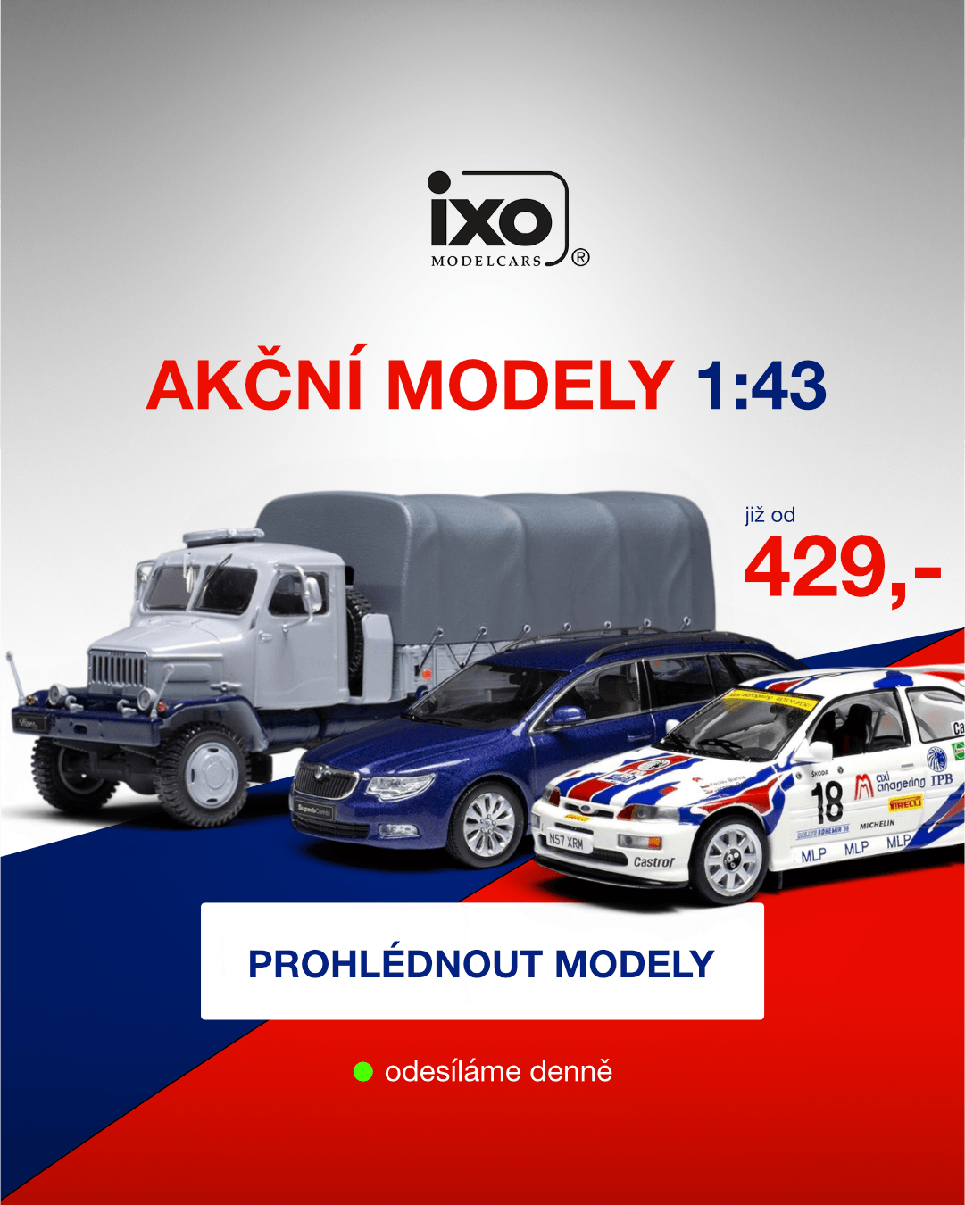 Tisíce modelů máme skladem, modely odesíláme v den objednávky, případně následující pracovní den.