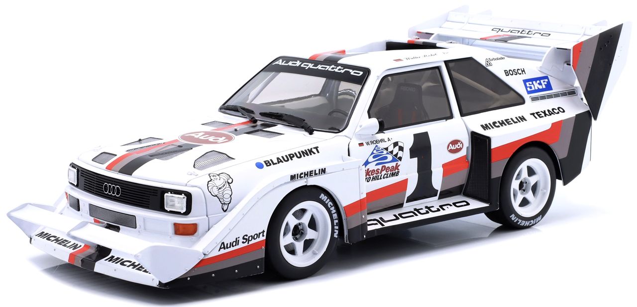 Audi Sport Quattro S1 E2 #1 Walter Röhrl Winner Pikes Peak 1987 with Collector Box 1:18 Werk83