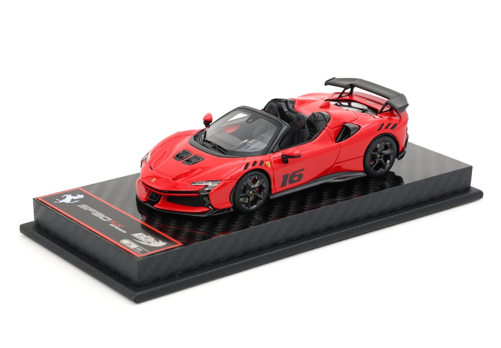 Exkluzivní sběratelský model otevřené verze Ferrari SF90 XX Spider v provedení Race N.16, vyroben exkluzivní italskou značkou B.B.R. Models. Tato varianta je inspirována závodní estetikou a představuje spojení maximálního výkonu, technické preciznosti a nekompromisního designu.