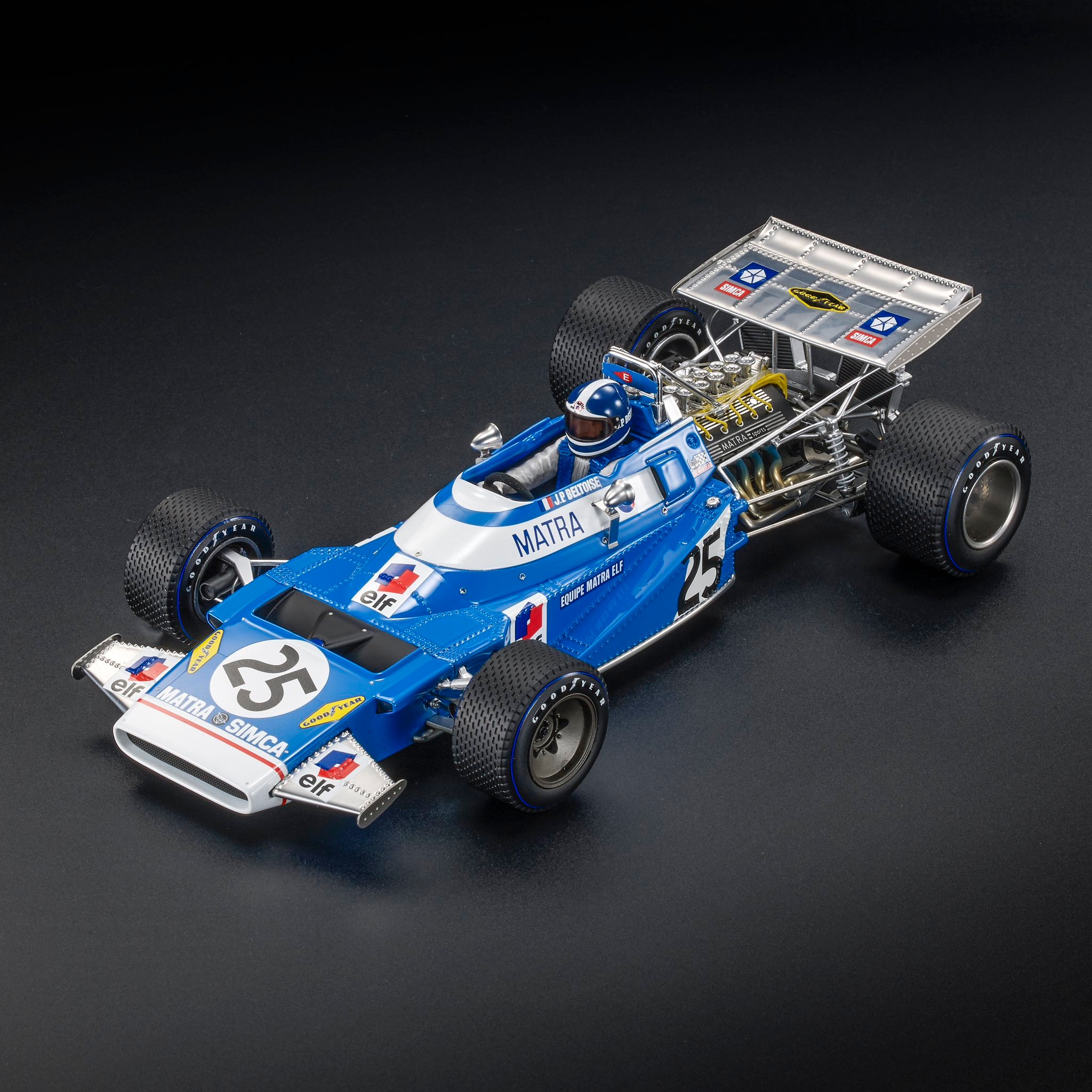 Model: Matra Simca F1 MS120 #25 J.-P.Beltoise 3rd Belgium GP 1970 with Driver Figure