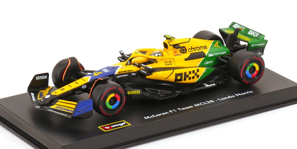 - McLaren MCL 38 #4 L.Norris 4th Monaco GP Senna 30th Anniversary Livery 2024 with Helmet 1:43 Bburago