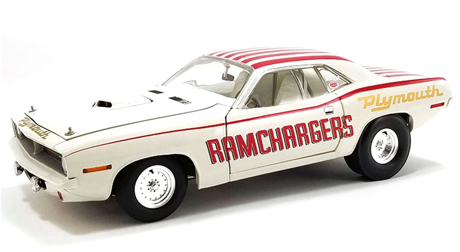 - Plymouth Cuda Super Stock *Ramchargers 1970 white/red 1:18 Acme Diecast