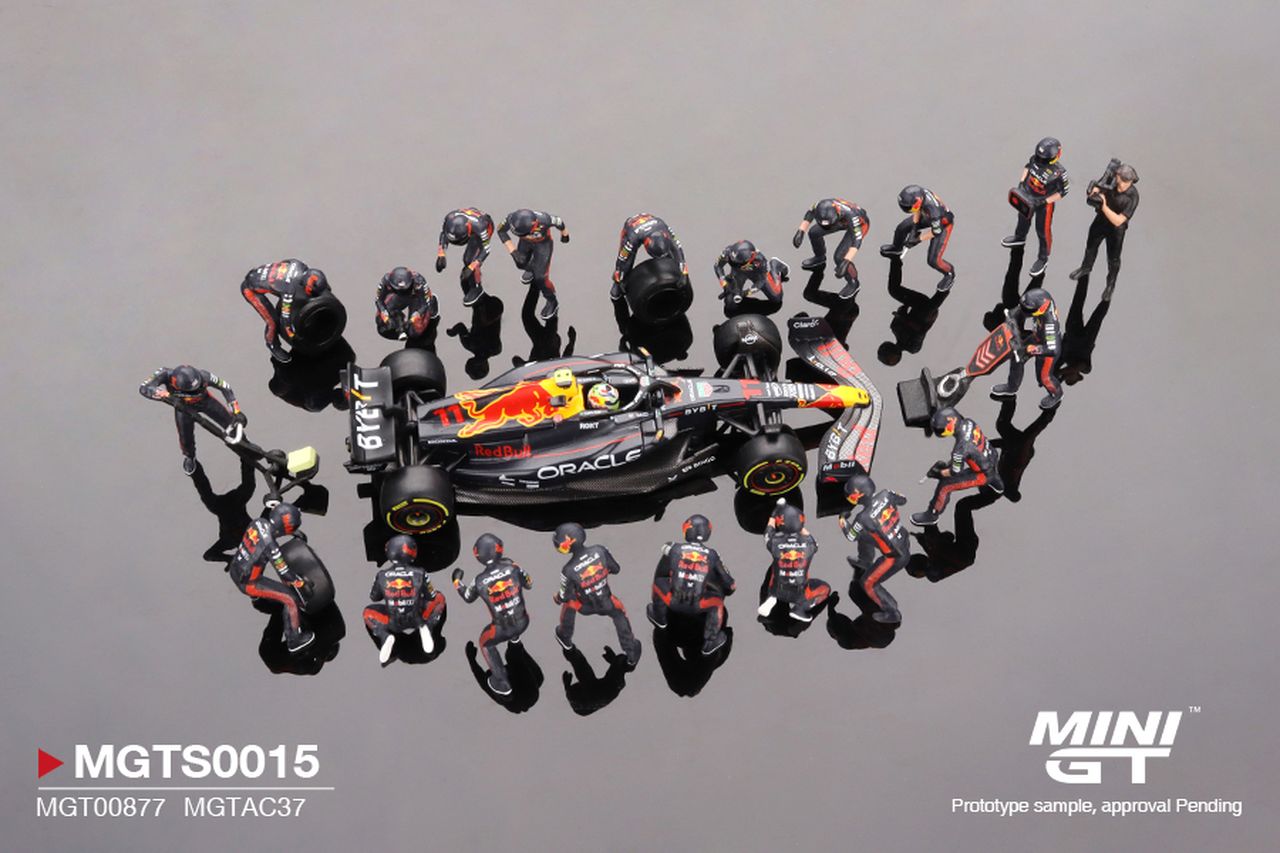- Red Bull Racing RB19 #11 Sergio Pérez Japanese GP 2023 Pit Crew Set 1:64 Mini GT