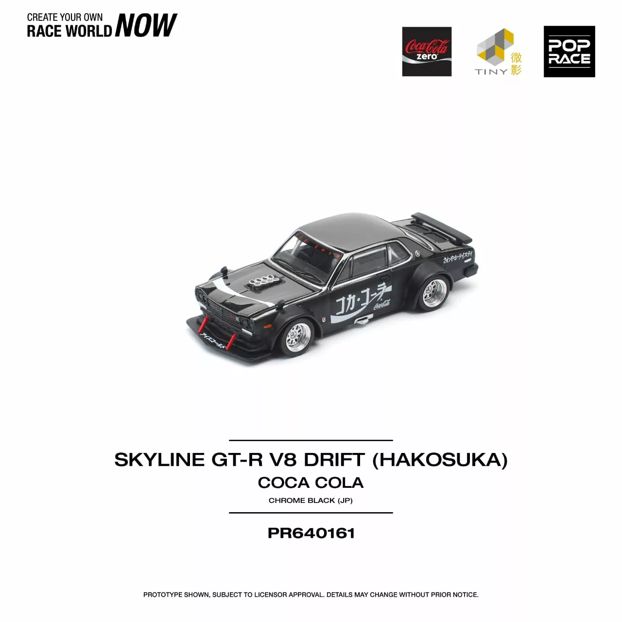 Skyline GT-R Drift (Hakosuka) Coca Cola Zero JP black 1:64 Pop RaceDruhé čtvrtletí 2026 - možnost předobjednávky429 Kč/ ks